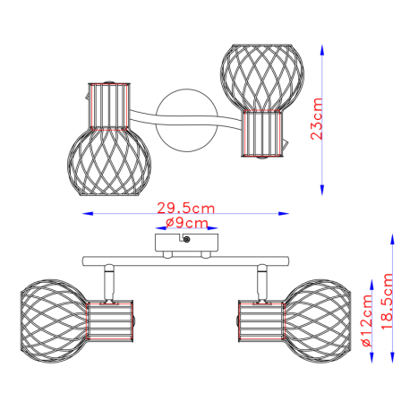GL-54013-2 Nástěnné svítidlo, kov černý zlatý, kov černý, Dx?xV: 30x23x19cm, bez žárovek 2xE27, max. 40W 230V - Argusto