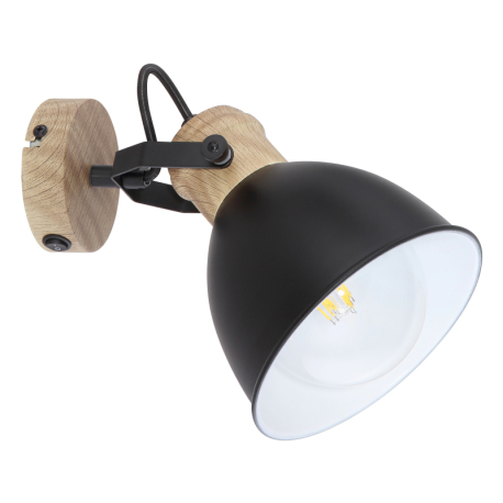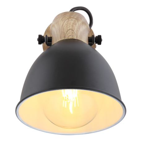 GL-54018-1S Nástěnné svítidlo, kov černý, kov v barvě imitující dřevo, hnědý, vypínač, ?xV: 15x19cm, V:19cm, bez žárovky 1xE27, max. 40W 230V - Wiho