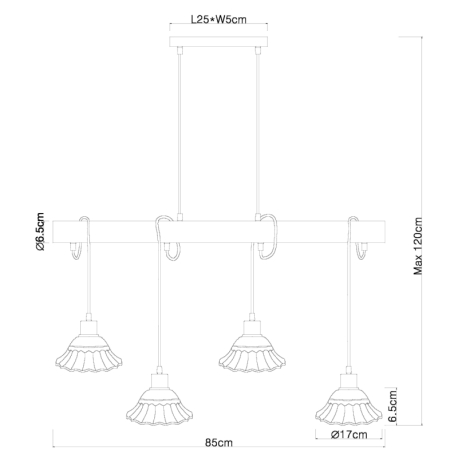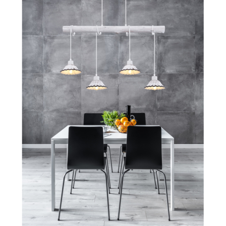 GL-54050-4H Závěsné svítidlo, kov bílý a černý, dřevo bílé, keramika bílá a černá, Dx?xV: 85x17x120cm, bez žárovek 4xE27, max. 40W 230V - Jowita P