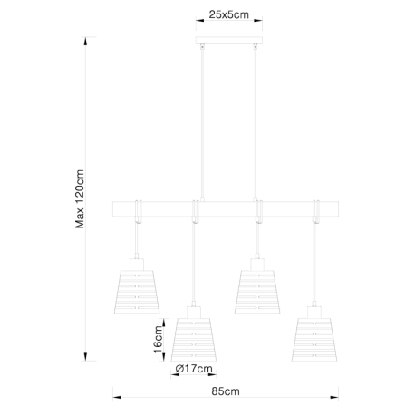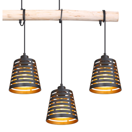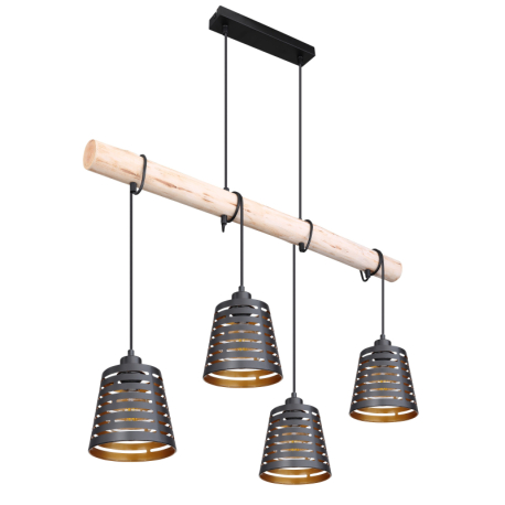 GL-15451-4H Závěsné svítidlo, kov černý matný, dřevo, kov černý a zlatý, Dx?xV: 85x17x120cm, bez žárovek 4xE27, max. 60W 230V - Ablona
