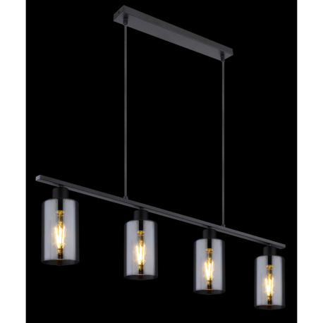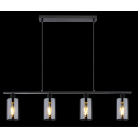 GL-15465-4H Závěsné svítidlo, kov černý matný, kouřové sklo, Dx?xV: 98x10x120cm, bez žárovek 4xE27, max. 60W 230V - Hadera I