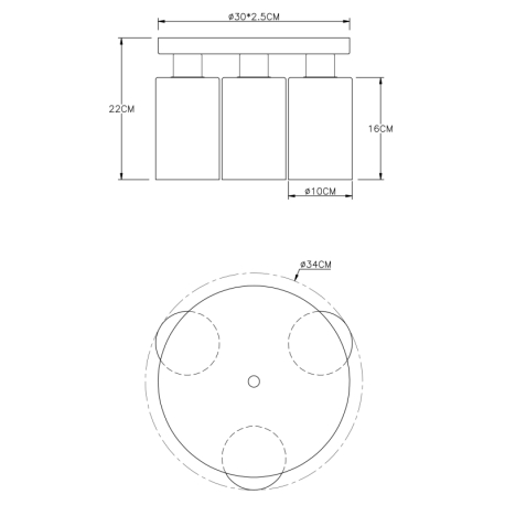 GL-15465-3D Stropní svítidlo, kov černý, kouřové sklo, Ø34cm, V:22cm, bez žárovek 3xE27, max. 60W 230V - Hadera I