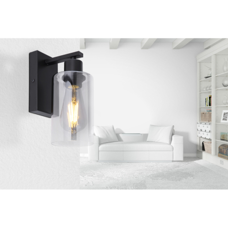 GL-15465W Nástěnné svítidlo, kov černý, sklo kouřové, svítí směrem dolů, ?xV: 10x23cm, H:15cm, bez žárovky 1xE27, max. 60W 230V - Hadera I