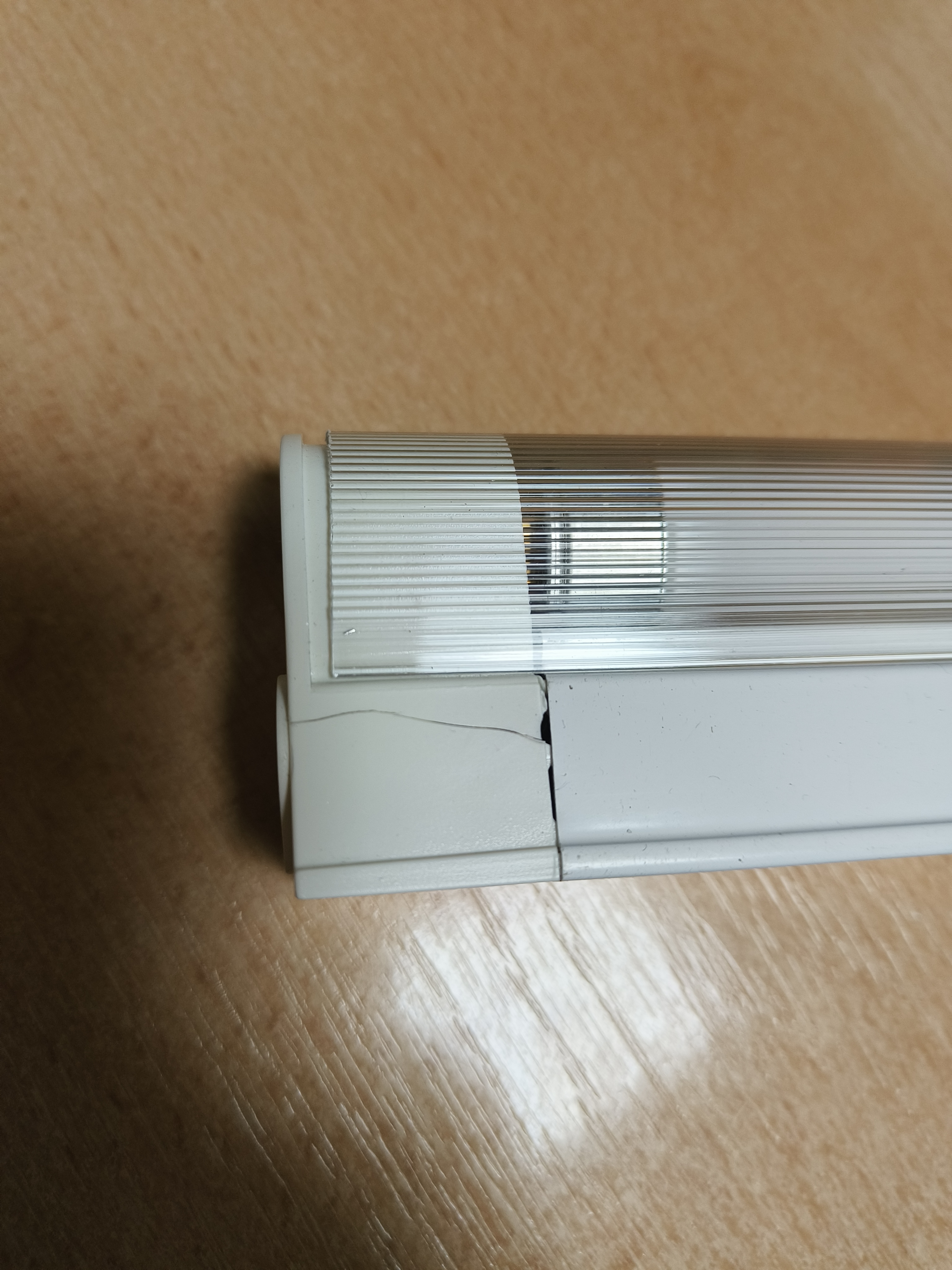 Svietidlo má prasklinu na kraji svietidla. Nemá vplyv na funkciu svietidla. |