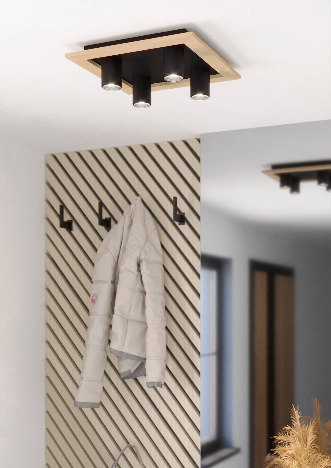 Moderné stropné svietidlá vyrobené z ocele v čiernej farbe a z dreva v hnedej farbe. Sú vhodné nielen do obývacích izieb, ale aj chodieb a predsiení. |