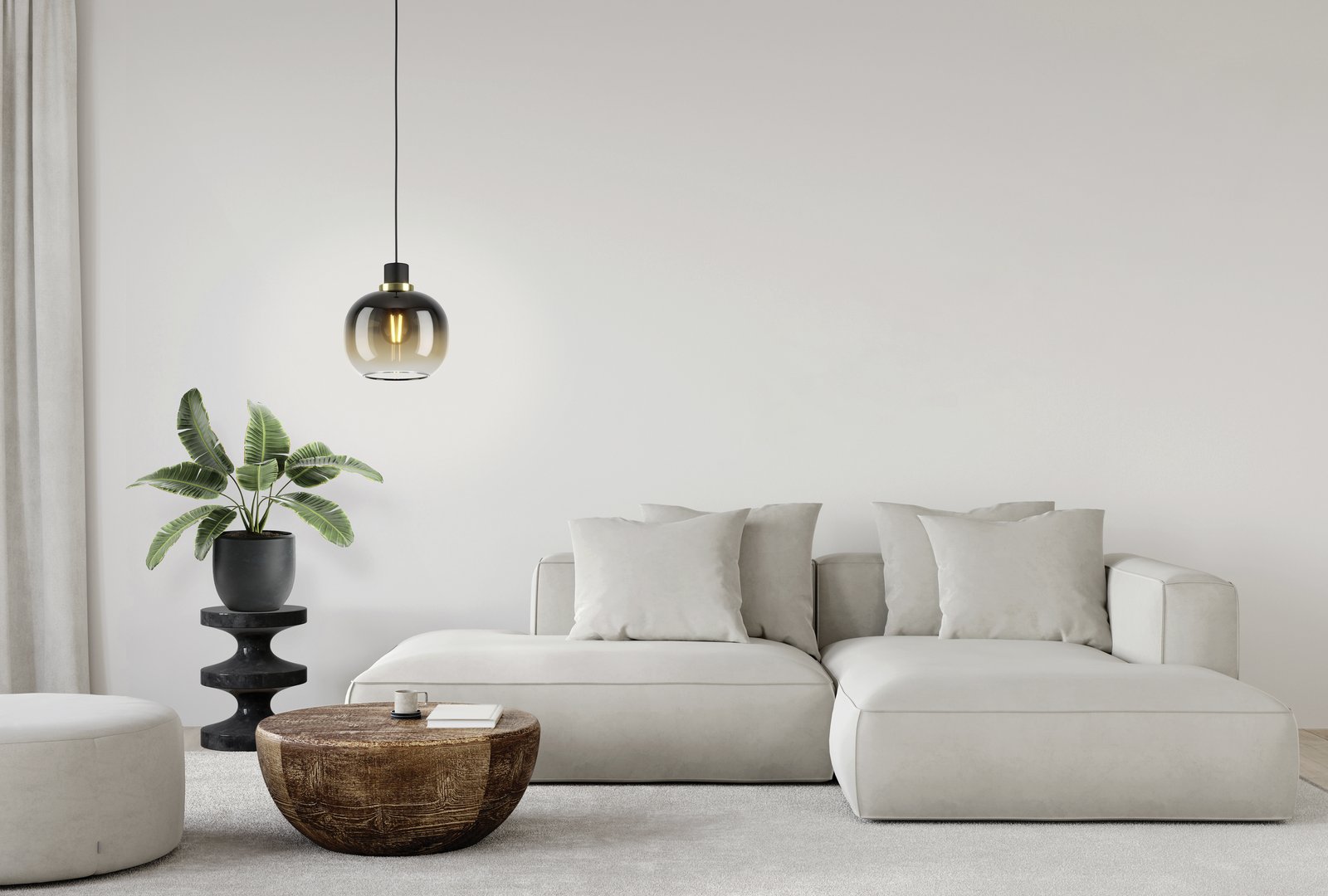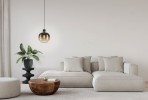 Moderné závesné svietidlá Oiella sú vhodné do kuchýň a jedální, ale aj do obývacích izieb. Základňa je vyrobená z ocele v čiernej a mosadznej farbe a tienidlo je sklenené v tvare gule. |