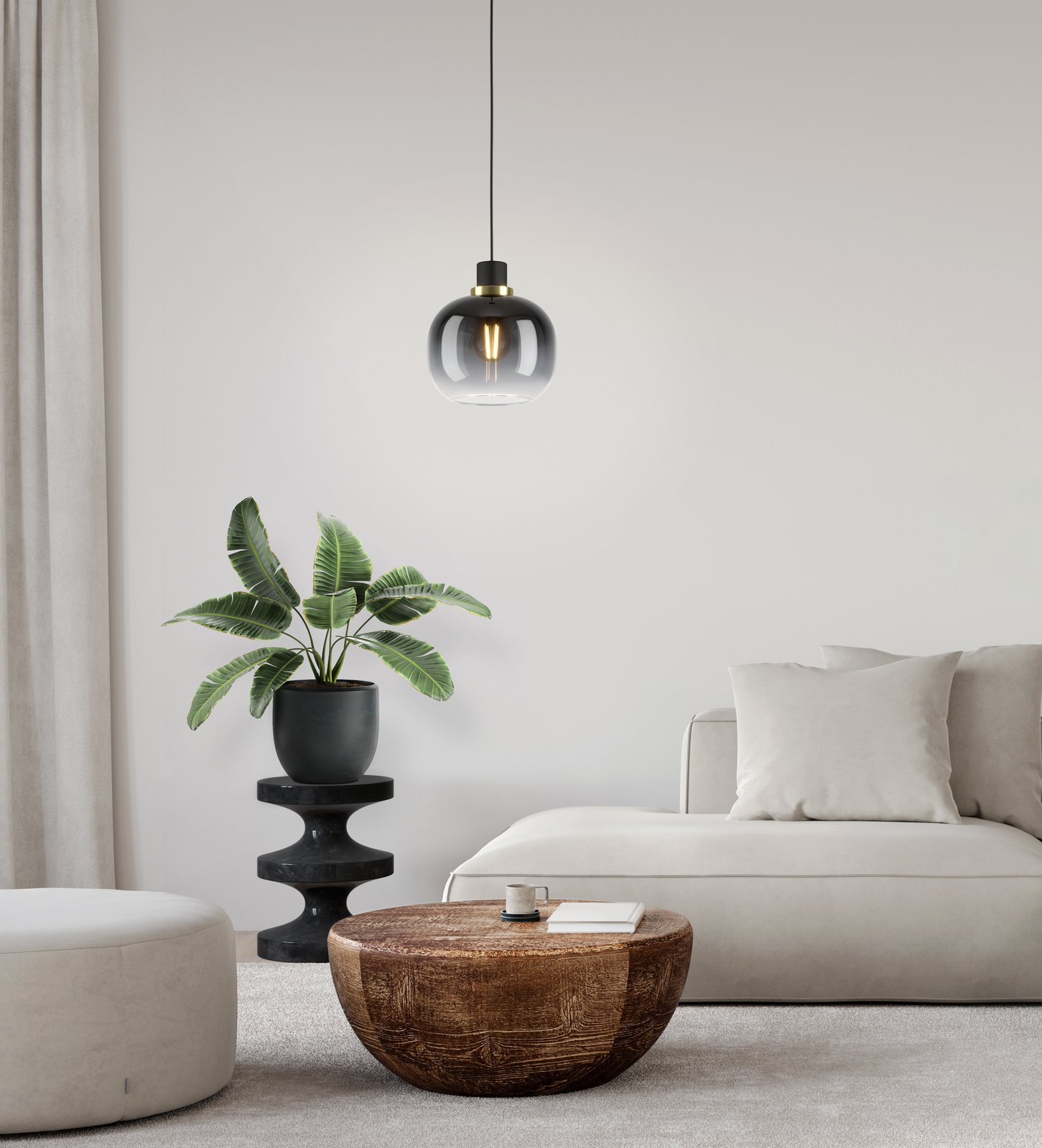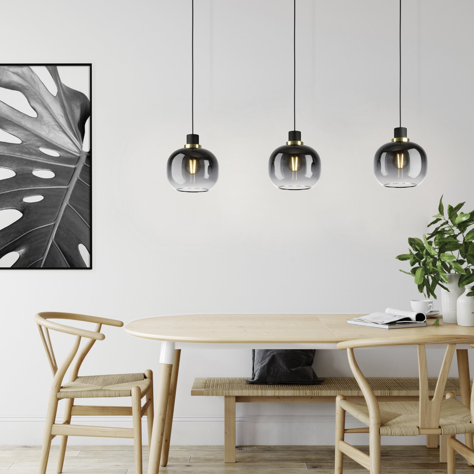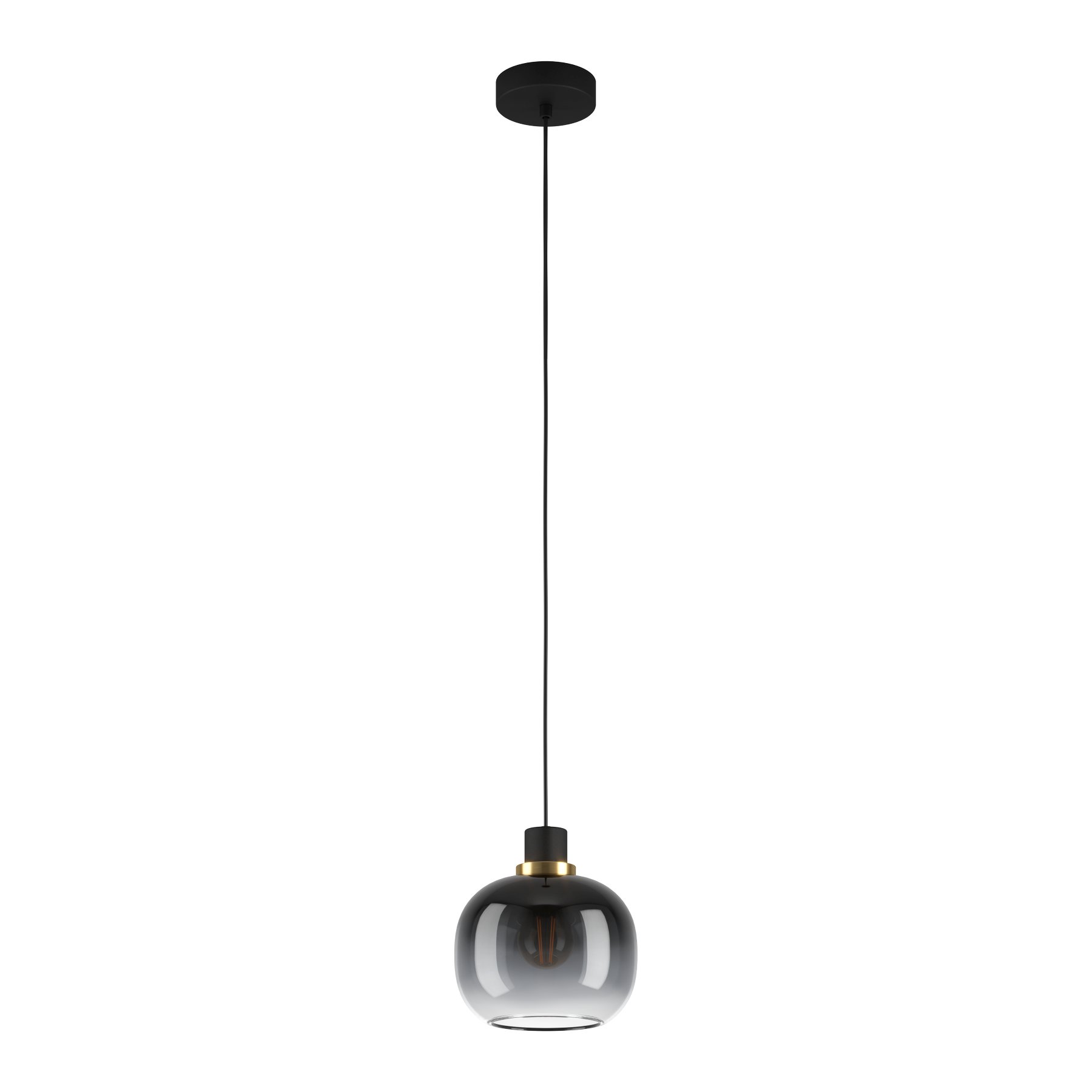 Moderné závesné svietidlá Oiella sú vhodné do kuchýň a jedální, ale aj do obývacích izieb. Základňa je vyrobená z ocele v čiernej a mosadznej farbe a tienidlo je sklenené v tvare gule. |
