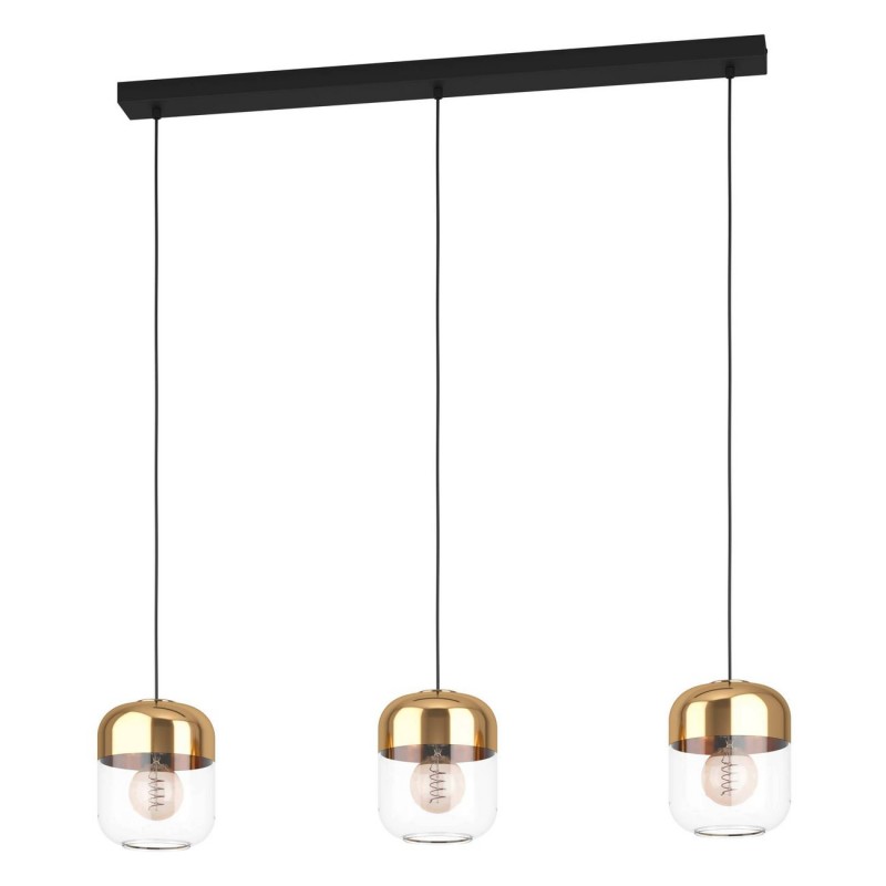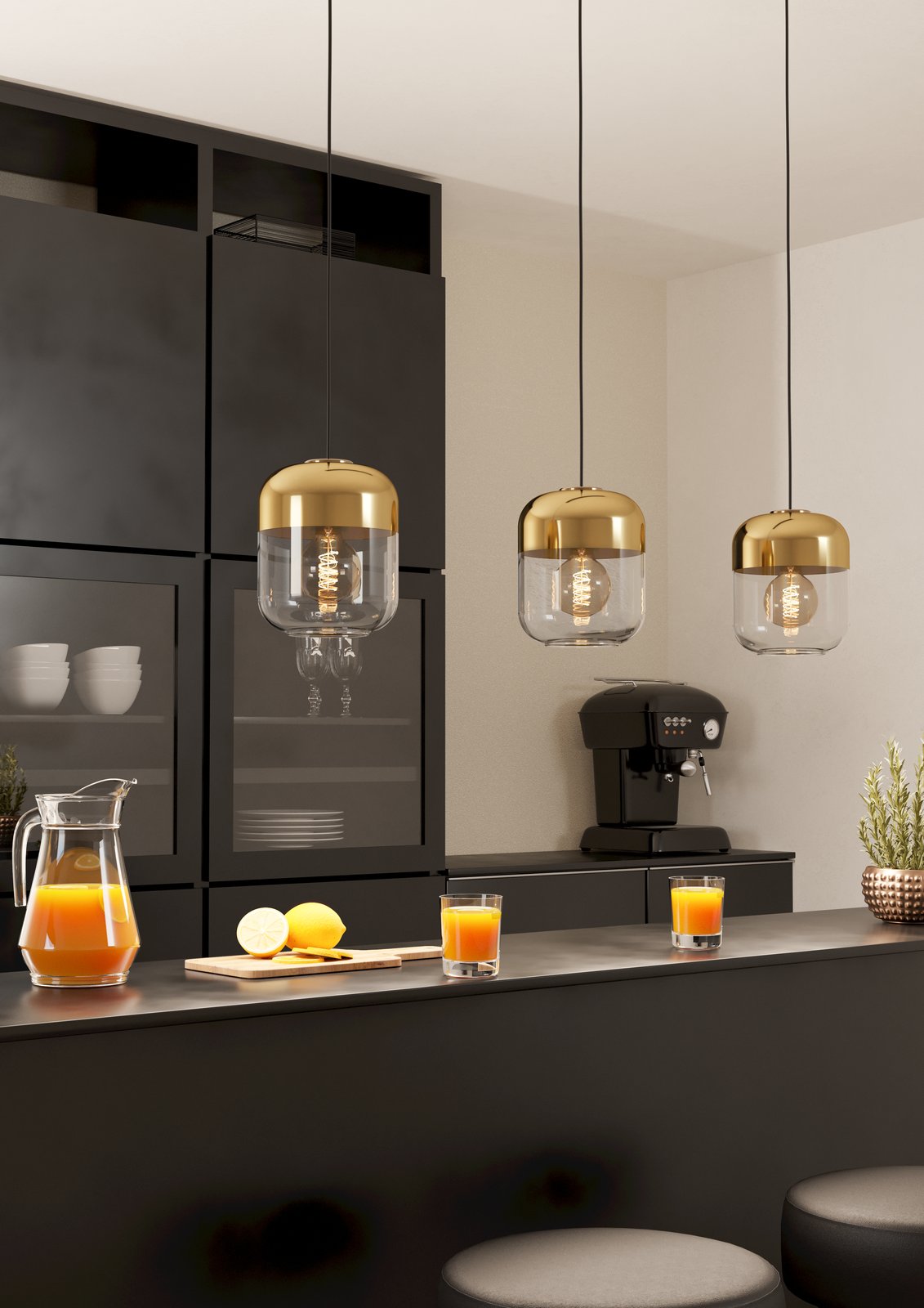 Moderné a štýlové lustre vhodné do obývacích izieb, kuchýň a jedální. Nad jedálenským stolom alebo kuchynským ostrovčekom môžete týmto svietidlom vytvoriť zaujímavý prvok. Lustre sú vyrobené z ocele v čiernej a bronzovej farbe a sklenené tienidlo je vo farbe číre a zlaté. Doladiť môžete ešte výberom vhodnej žiarovky. |