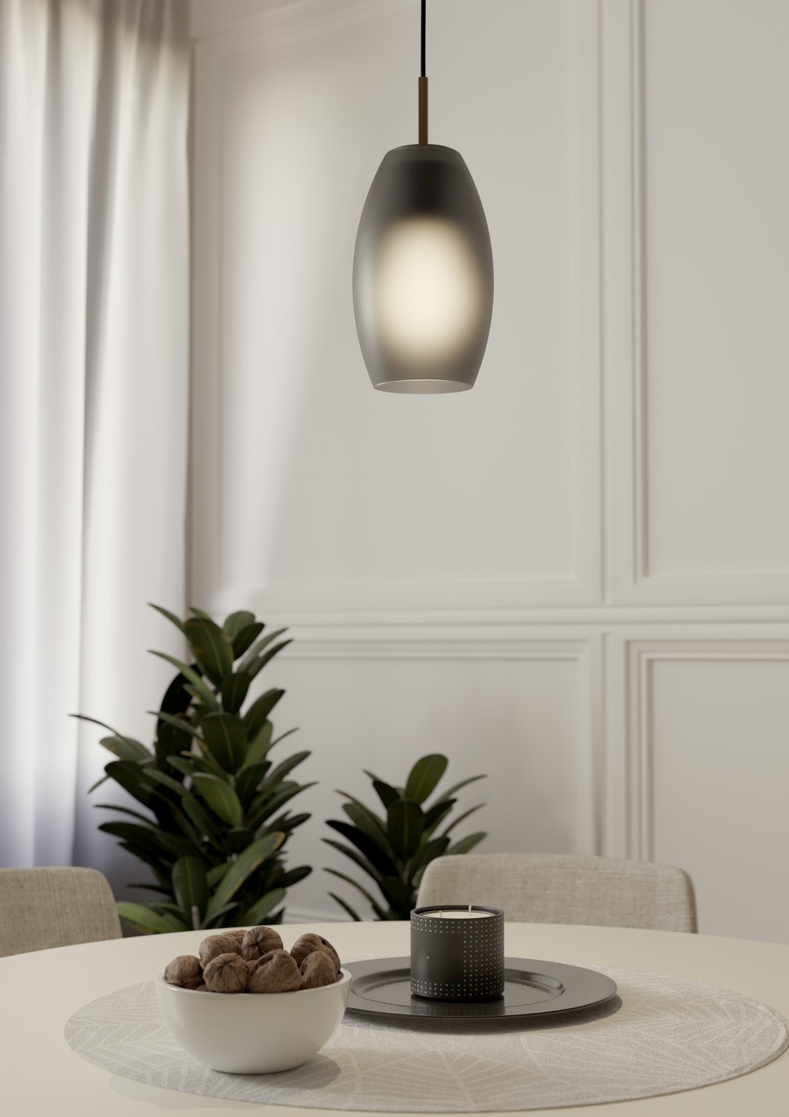 Moderné lustre vyrobené z ocele v čiernej farbe, tienidlá sú vyrobené zo skla v matnej šedej farbe s mosadzným prvkom. Sú vhodné predovšetkým do kuchýň a jedální, nad jedálenský stôl alebo kuchynský ostrovček. |