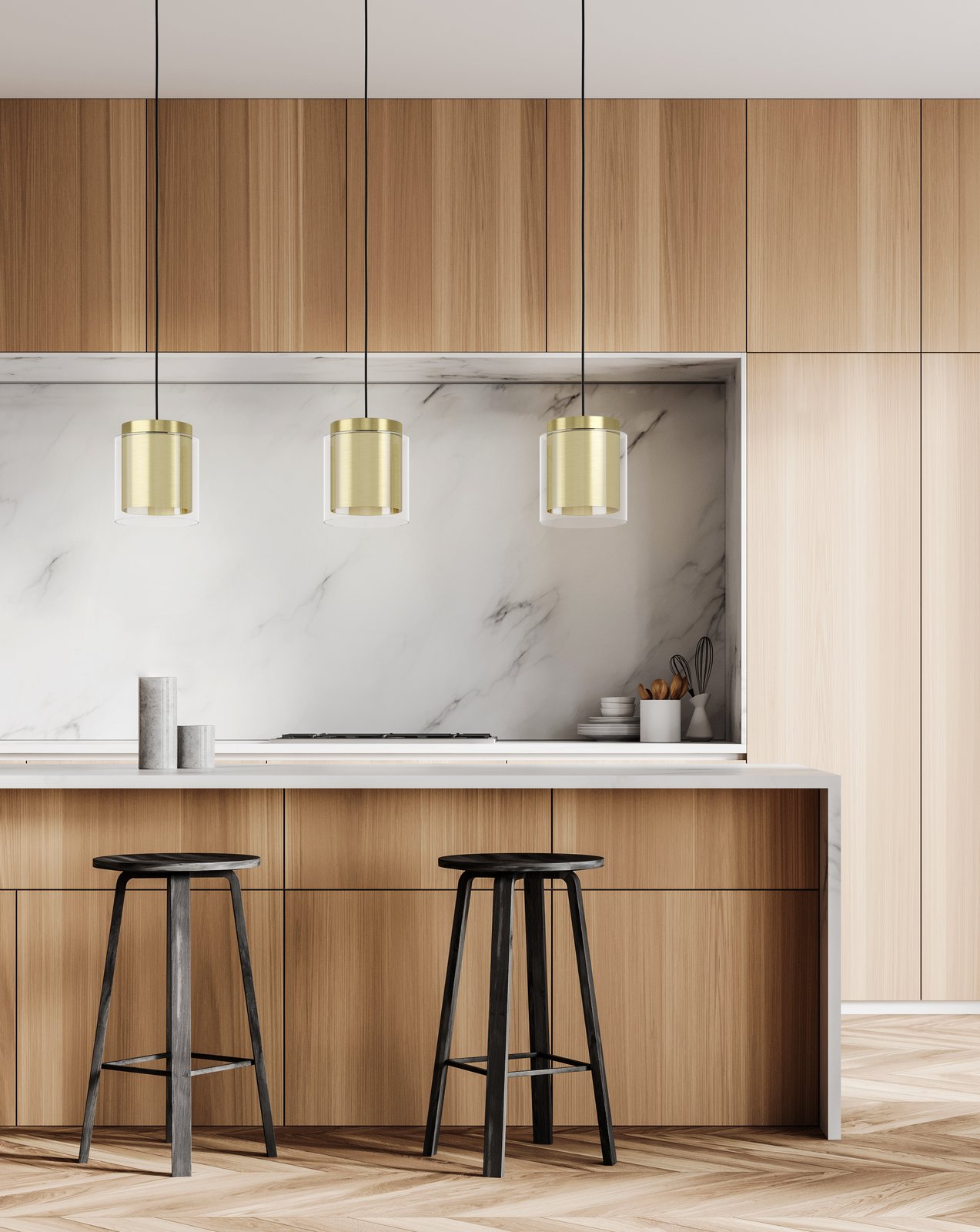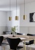 Moderné závesné svietidlá vhodné do obývacích izieb, kuchýň nad kuchynský ostrovček aj jedální nad jedálenský stôl. Základňa je vyrobená z ocele v čiernej farbe, kĺb je z ocele v mosadznej a zlatej farbe a zo skla v čírej farbe. |