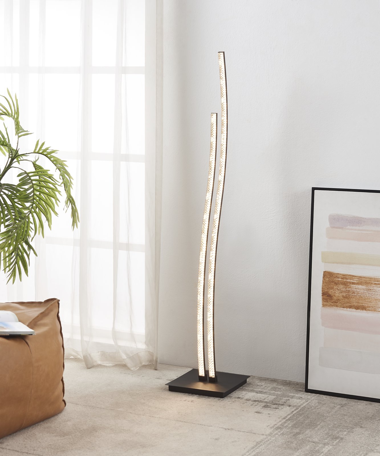 Elegantne vyzerajúca lampa a stolná lampička sú vhodné do všetkých moderných interiérov. Sú vyrobené z ocele v čiernej farbe a plastu v transparentnej farbe. Svieti teplou bielou farbou a nie je možné ich stmievať. V interiéri vytvorí po rozsvietení príjemnú atmosféru a krásny prvok.