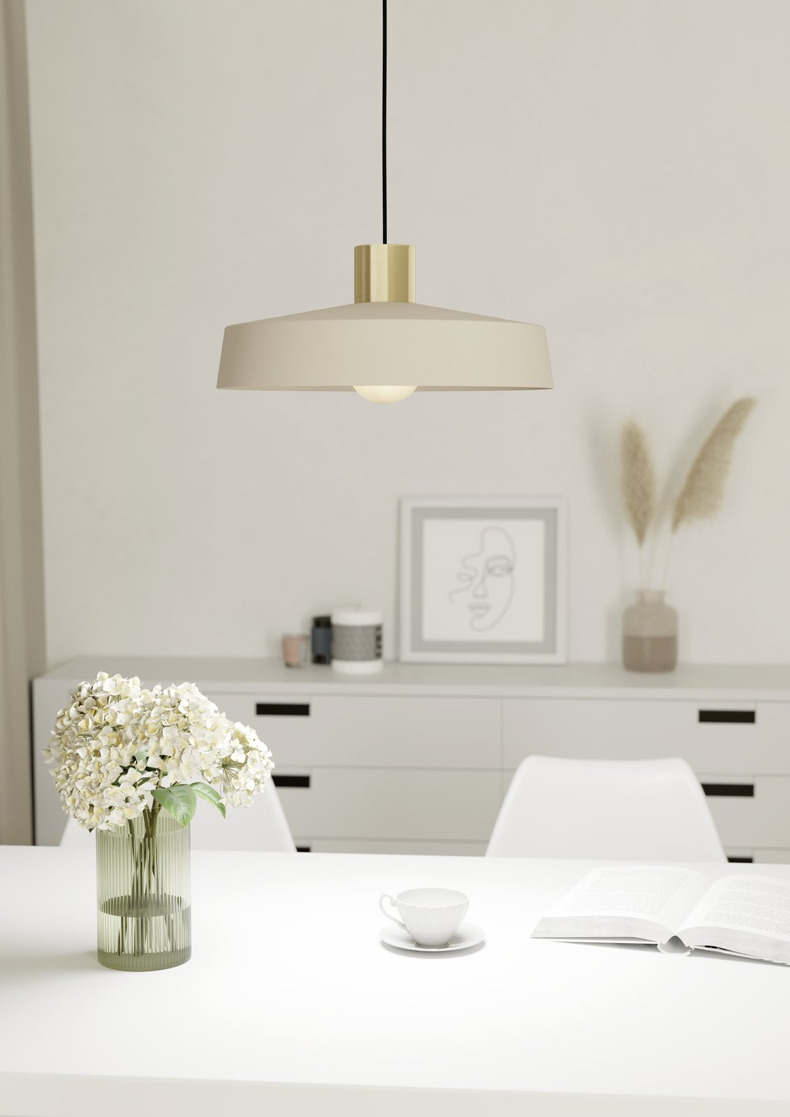 Moderné závesné svietidlá vyrobené z ocele v pieskovej farbe s prvkami mosadznej. Je možné ich osadiť chytrými LED žiarovkami a pomocou aplikácie v smartfóne je stmievať a meniť teplotu a farbu svietenia. Sú vhodné nielen do kuchýň a jedální, ale aj do obývacích izieb. |