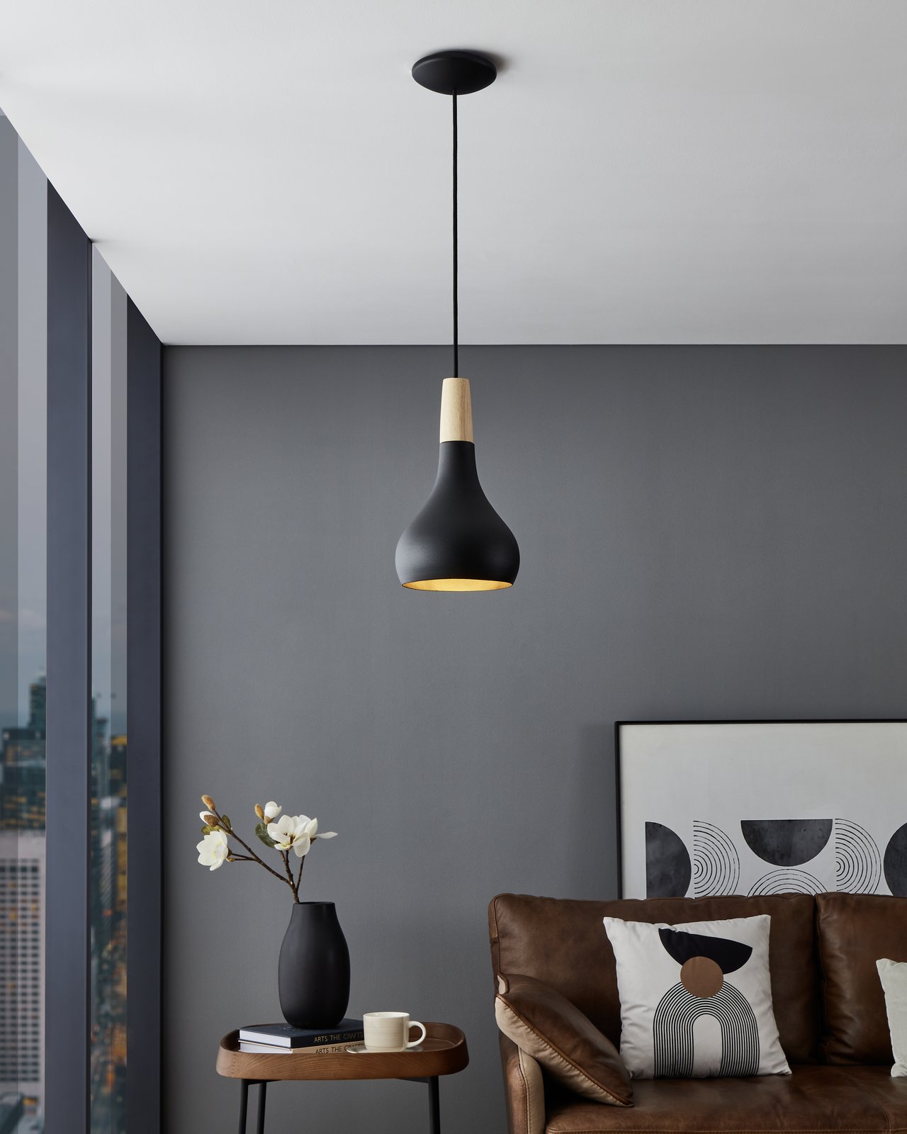 Moderné závesné svietidlá Sabinar sú vyrobené z ocele v čiernej farbe, s dreveným prvkom v hnedej farbe. Majú jednoduchý, čistý design, čierna farba im dodáva elegantný vzhľad, čím sa stávajú ideálnou voľbou pre váš interiér. |