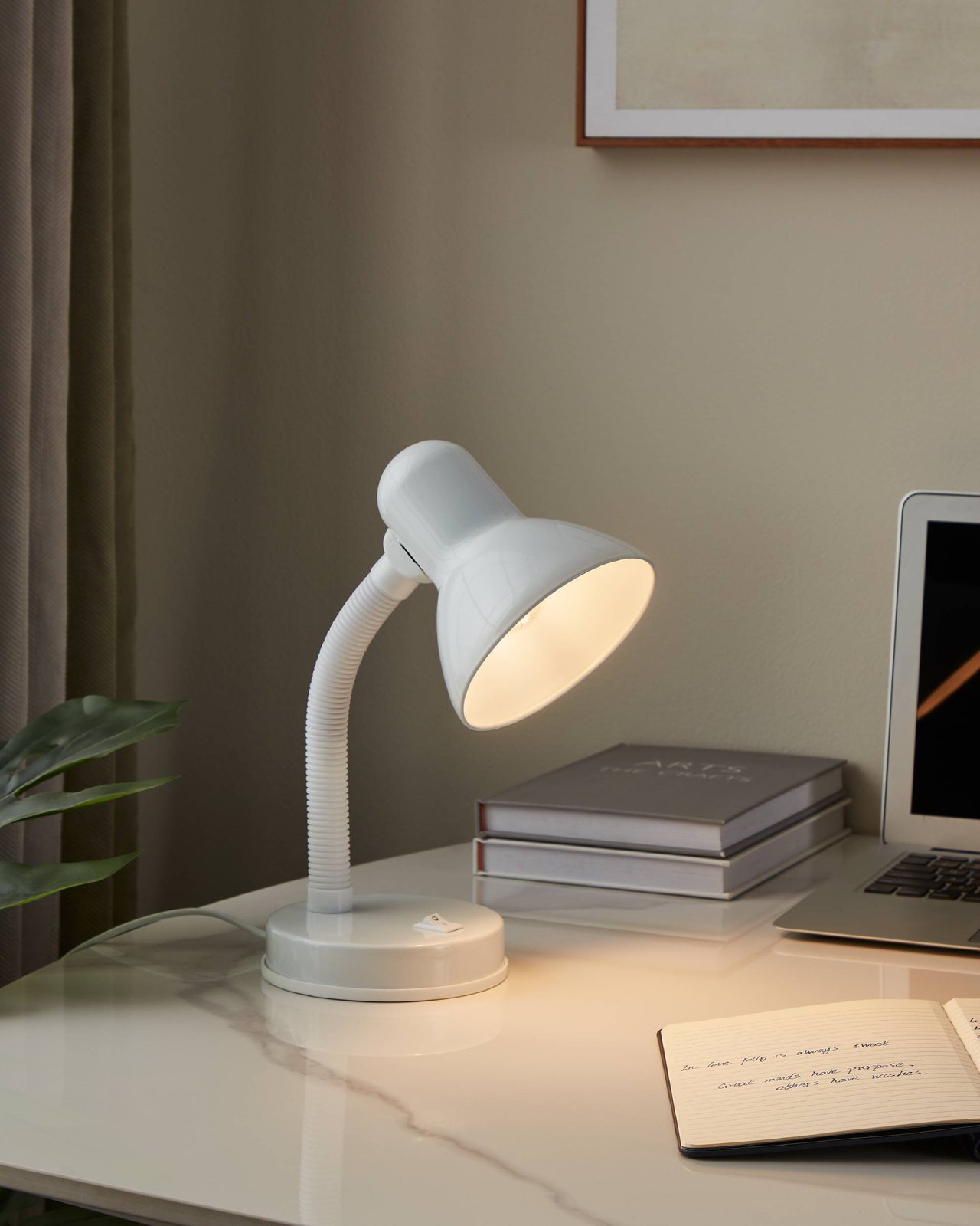 Jednoduchá lamipička vhodná do detskej izby alebo do kancelárie. Je vyrobená z plastu a ocele. Lampička má ohybný krk, takže je možné podľa potreby nastaviť tak, aby svietila kam je práve nutné. |