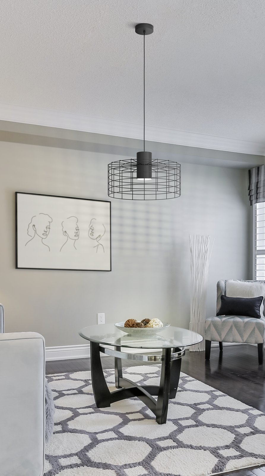 Moderné závesné svietidlá Milligan sú vhodné predovšetkým do obývacích izieb, kuchýň a jedální. Sú vyrobené z ocele v čiernej a bielej farbe. Tienidlo je tvorené jednoduchým valcom, ktorý je obpletený kovovými drôtmi. |