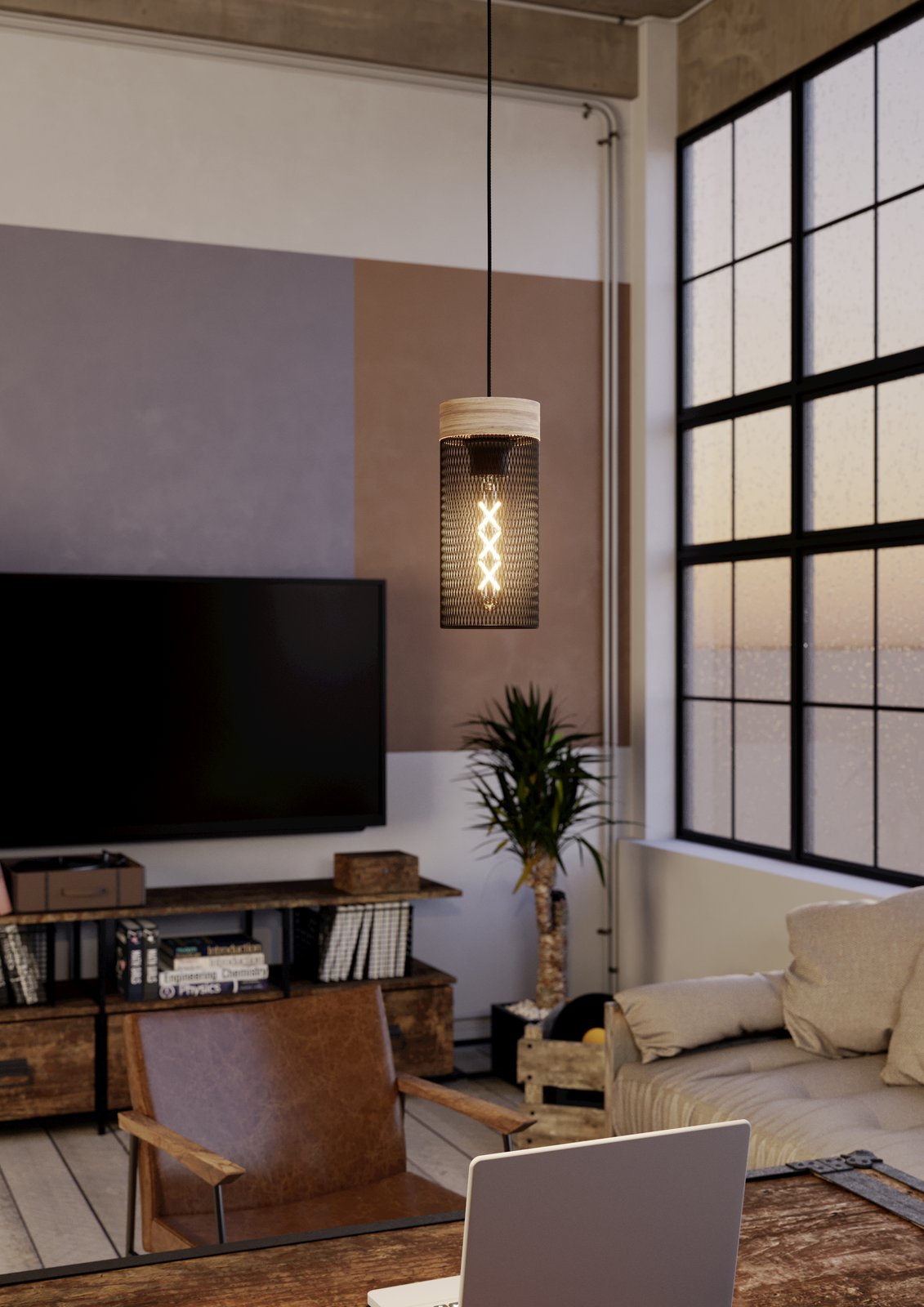 Egl-43833 HL/1 E27 SCHWARZ/HOLZ 'KILNSDALE' - Kilnsdale