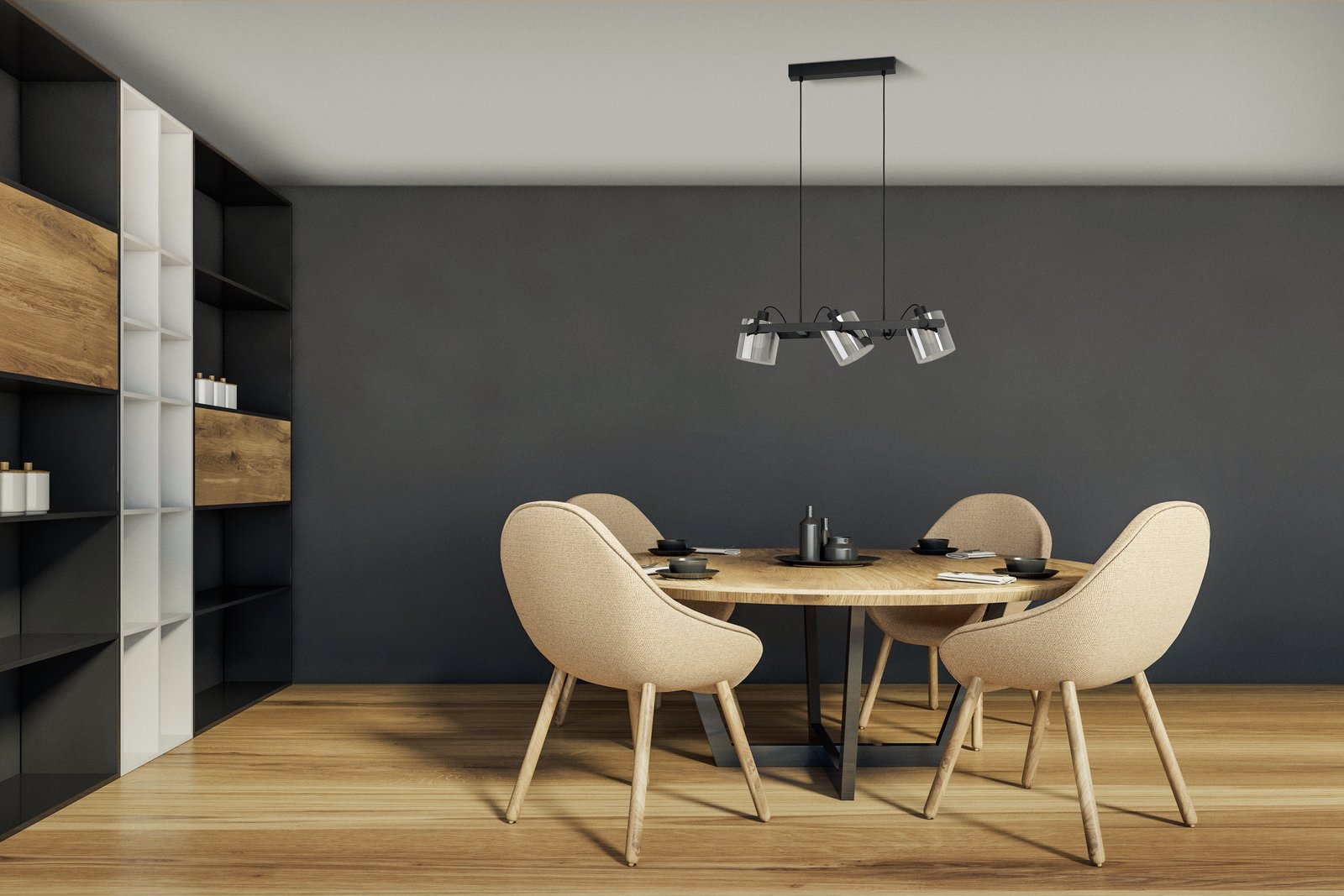 Moderné, štýlové svietidlá vyrobené z ocele v čiernej farbe a z dymového skla. Hlavy, ktoré sú umiestnené na základni sú pohyblivé do strán a je možné ich natočiť tam, kam práve potrebujete svietiť. |