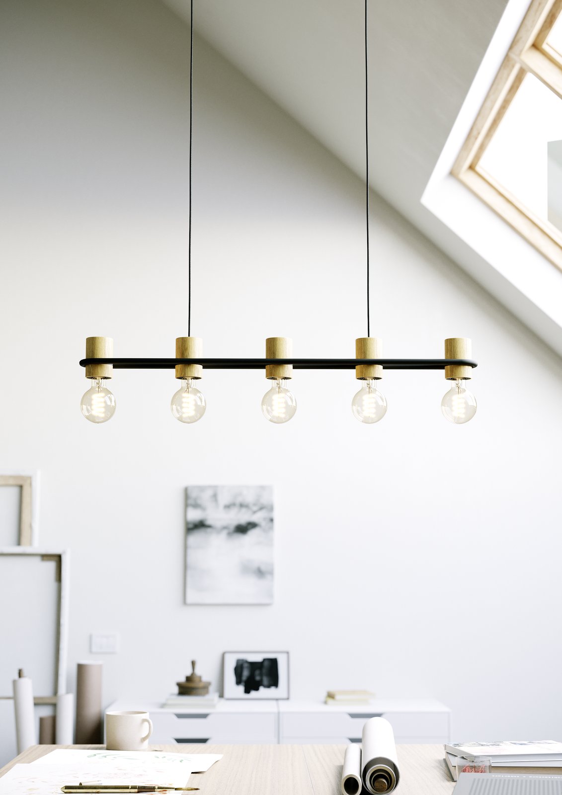 Moderné štýlové svietidlá vyrobené z ocele v čiernej farbe a z dreva v hnedej farbe. Skvele sa hodí do obývacích izieb, kuchýň, jedální, ale aj chodby či spálne. Celkový vzhľad môžete dotvoriť výberom zaujímavej žiarovky. |