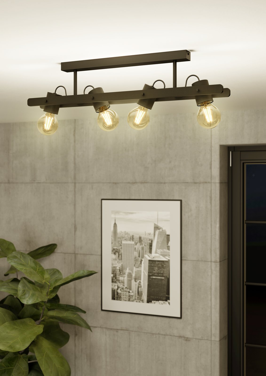 Moderné svietidlá vyrobené z ocele a z dreva v čiernej farbe. Hodí sa do obývacích izieb, kuchýň, chodieb, predsiení a pod. Hlavy svietidla je možné nakláňať tam, kam je práve potrebné svietiť. |