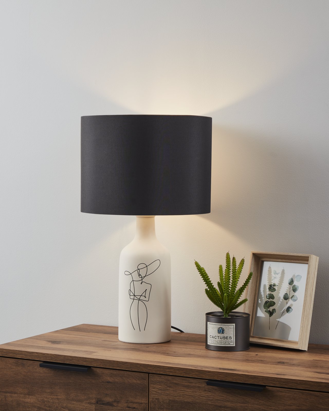 Moderné a elegantné lampičky vhodné do obývacej izby alebo spálne na komodu alebo nočné stolíky. Sú vyrobené z keramiky, na ktoré je jednoduchá kresba a textilu. |