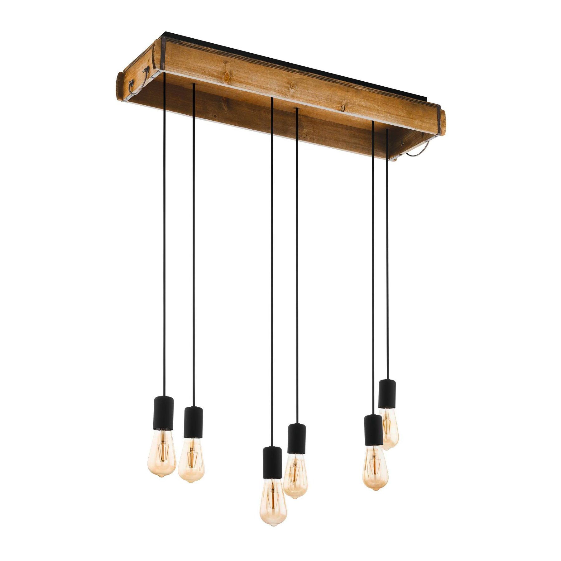 Štýlové závesné svietidlá vyrobené z dreva v hnedej farbe a z ocele v čiernej farbe. Na strope je umiestnená drevená krabica, z ktorej vysia objímky v čiernej farbe. Osaďte ich zaujímavými retrožiarovkami, čím ešte umocníte jedinečnosť tohto svietidla. |