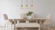 Dizajnovo zaujímavé závesné svietidlá vyrobené z ocele v čiernej farbe a prírodného hnedého dreva. Je možné ich osadiť chytrou LED žiarovkou a smartfónom stmievať alebo meniť teplotu farby svietenia. |