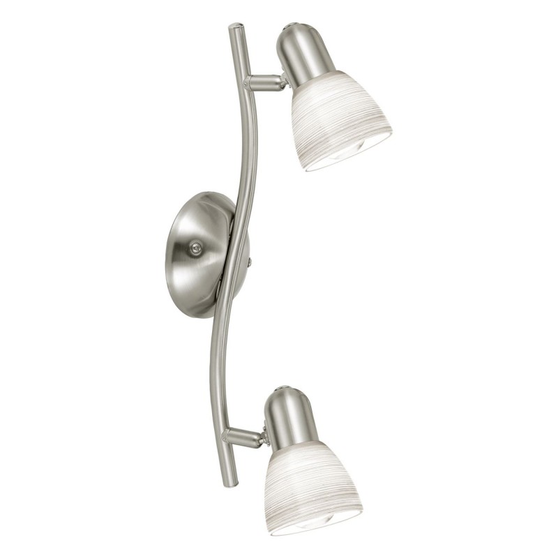 Klasické bodové svietidlá vyrobené z kovu v matnom nikle a ručne vyrábaným bielym sklom s použitím tzv. stieracej techniky, ktorá tvorí na skle zaujímavý dekor. |