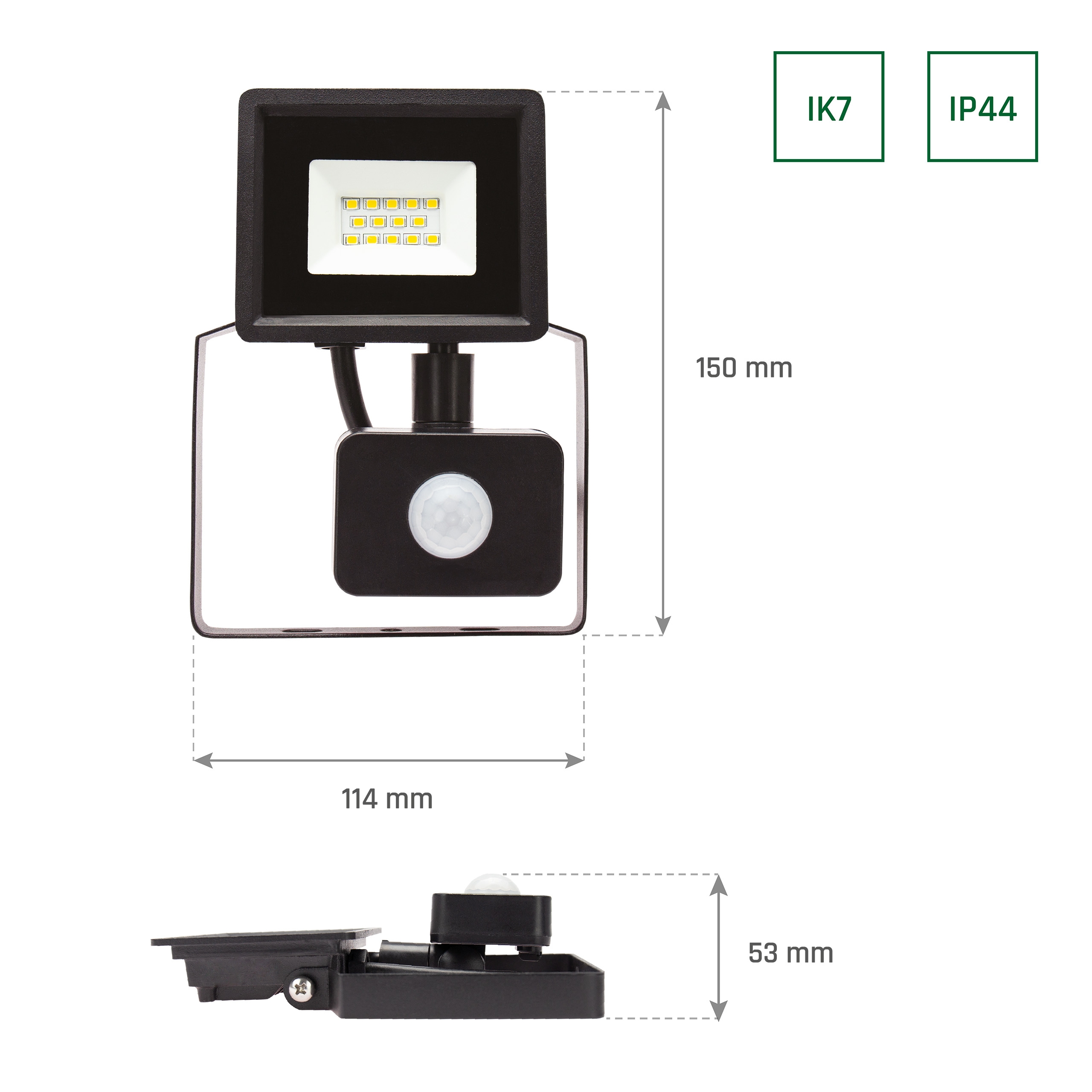 Woj-SLI029048NW_CZUJNIK_PW NOCTIS LUX 3 FLOODLIGHT 10W NW 230V IP44 114x150x53mm BLACK with PIR sensor - Noctis LUX 3 BLACK SENZOR