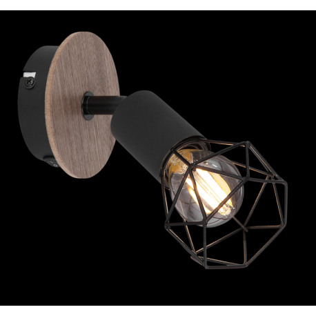 GL-54802S-1H Bodové svítidlo, kov černý, dřevo hnědé, vypínač, ?xV: 10x17cm, H:17cm, bez žárovky 1xE14, max. 40W 230V - Xara I black 2