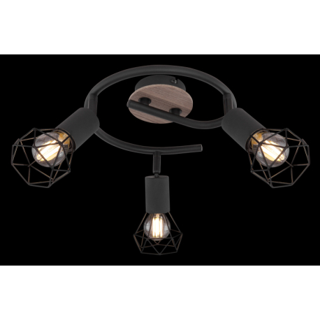 GL-54802S-3H Stropní svítidlo, kov černý, dřevo hnědé, Ø23cm, V:22cm, bez žárovek 3xE14, max. 40W 230V - Xara I black 2