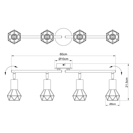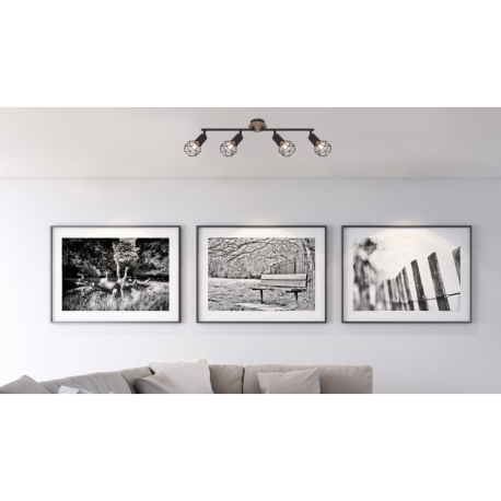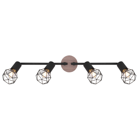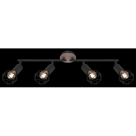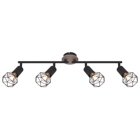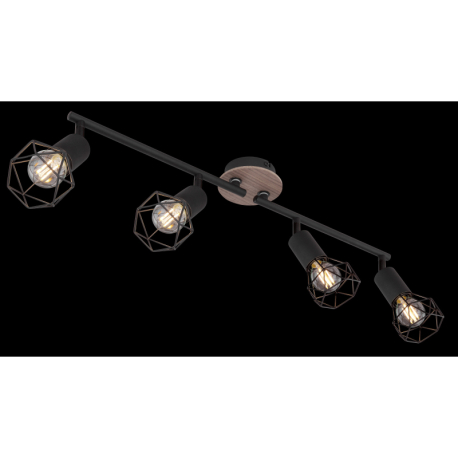GL-54802S-4H Stropní svítidlo, kov černý, dřevo přírodní, nastavitelné, Dx?xV: 60x10x22cm, bez žárovek 4xE14, max. 40W 230V - Xara I black 2