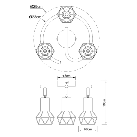 GL-54802S-3AB Stropní svítidlo, kov černý, starožitná mosaz Ø23cm, V:19cm, bez žárovek 3xE14, max. 40W 230V - Xara I brass