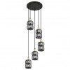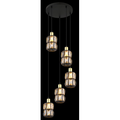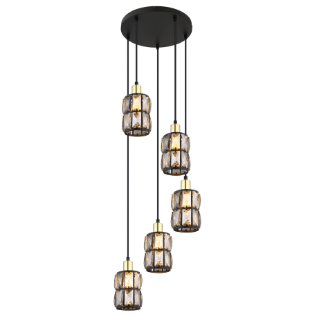GL-15761-5B Závěsné svítidlo, kov černý, skleněné křišťály kouřové, kov matný, černý PVC kabel, Ø30cm, V:120cm, bez žárovek 5xE14, max. 40W 230V - Wolli GL