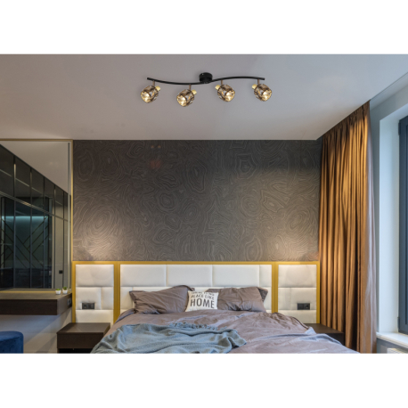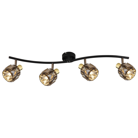 GL-54357-4B Stropní svítidlo, kov černý, kov zlatý, skleněné křišťály kouřové, nastavitelné, Dx?xV: 70x32x18cm, bez žárovek 4xE14, max. 40W 230V - Indiana Globo 2