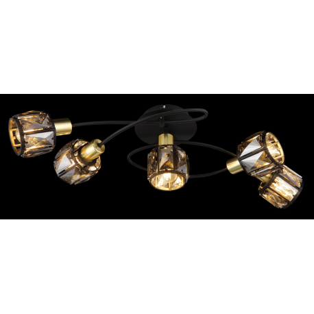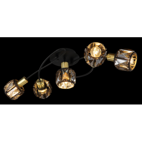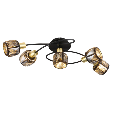 GL-54357-5B Stropní svítidlo, kov černý, kov zlatý, skleněné křišťály kouřové, Dx?xV: 62x36x21cm, bez 5xE14, max. 40W 230V - Indiana Globo 2