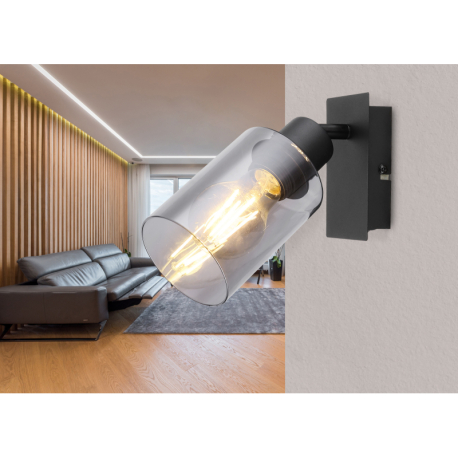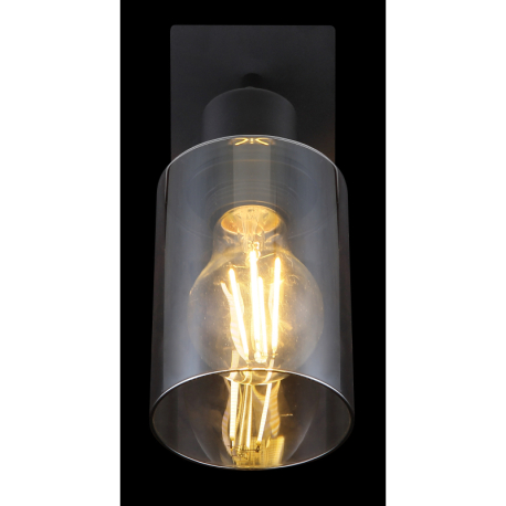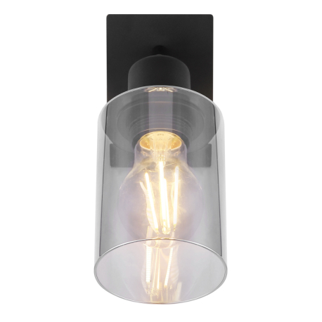 GL-15465-1 Nástěnné svítidlo, kov černý, kouřové sklo, s vypínačem, ?xV: 9x20cm, H:18cm, bez žárovky 1xE27, max. 15W 230V - Hadera