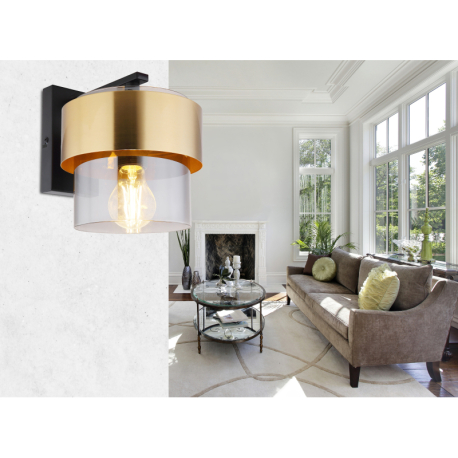 GL-15560W Nástěnné svítidlo, kov černý matný, sklo, mosaz, směr světla dolů, ?xV: 18x22cm, H:24cm, bez žárovky 1x E27, max. 60W 230V - Milley