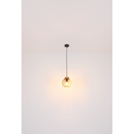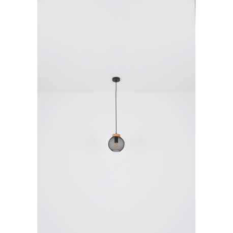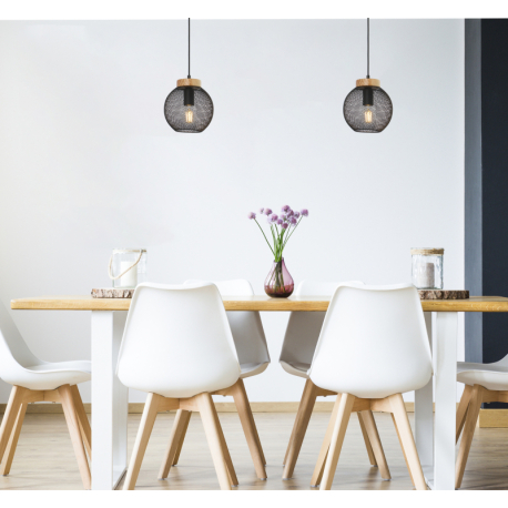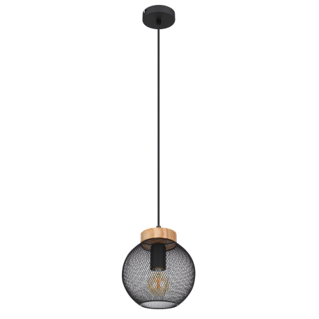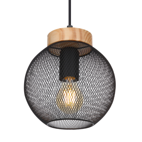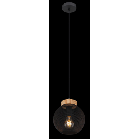 GL-15663H Závěsné svítidlo, kov černý, hnědé dřevo, Ø20cm, V:120cm, bez žárovky 1xE27, max. 60W 230V - Pablo Globo