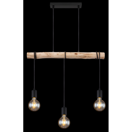 GL-15539-3H Závěsné svítidlo, kov černý, dřevo, textilní kabel černý, Dx?xV: 60x5x120cm, bez žárovek 3xE27, max. 60W 230V - Leo + Gregor