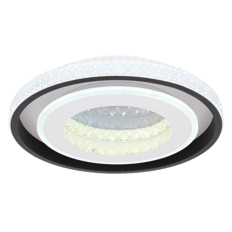 GL-41290-52 Stropní svítidlo, kov bílý a černý, akryl bílý, akrylové křišťály průhledné, paměťová funkce, noční světlo, stmívatelné, dálkové ovládání, fixace barvy, vrátane2xAAA, Ø50cm, V:8cm, LED 52W 230V, 5400 zdroj, 2260lm výstup, CCT 2700-6000K - Lucky + Sundi
