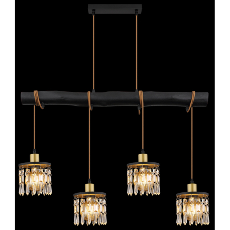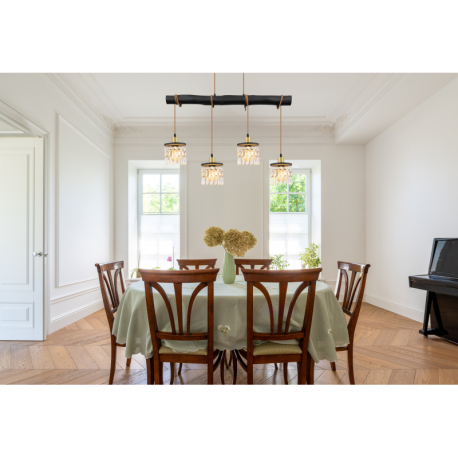 Nowoczesne i stylowe oprawy Comma wykonane są z metalu, drewna i małych szklanych kryształków. Można je również wyposażyć w inteligentne żarówki LED z gwintem E27 i używać smartfona do ich przyciemniania i regulacji temperatury barwowej światła. |