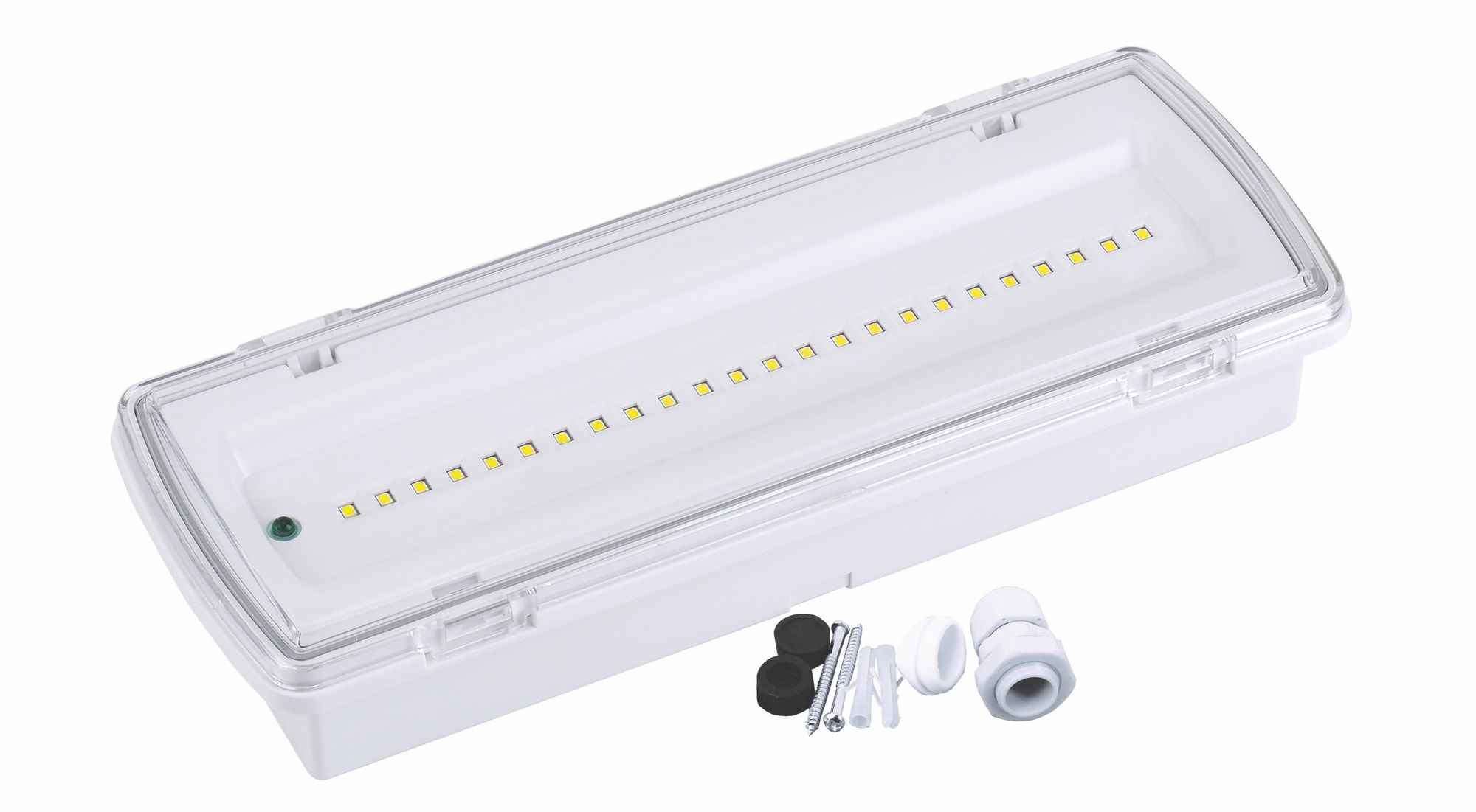 Núdzové svietidlo s príslušenstvom je vhodné na núdzové osvetlenie evakuačných a únikových ciest. Svietidlo je vyrobené z ABS a difúzor z polykarbonátu. |