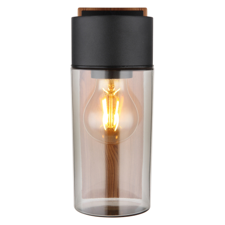 GL-31975 Venkovní svítidlo nerezová ocel imitace dřeva, nerezová ocel černá matná, sklo kouřové barvy, směr světla: dolů, IP44, ?xV:90x225mm, H:124mm, bez žárovky 1xE27 40W 230V - Etsi