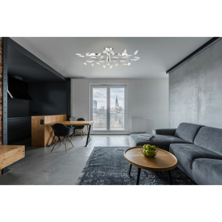 GL-63160-4 Stropní svítidlo, kov, chrom, akrylové křišťály průhledné a satinované, Ø62cm, V:15cm, bez žárovek 4xE14, max. 40W 230V. - Vida