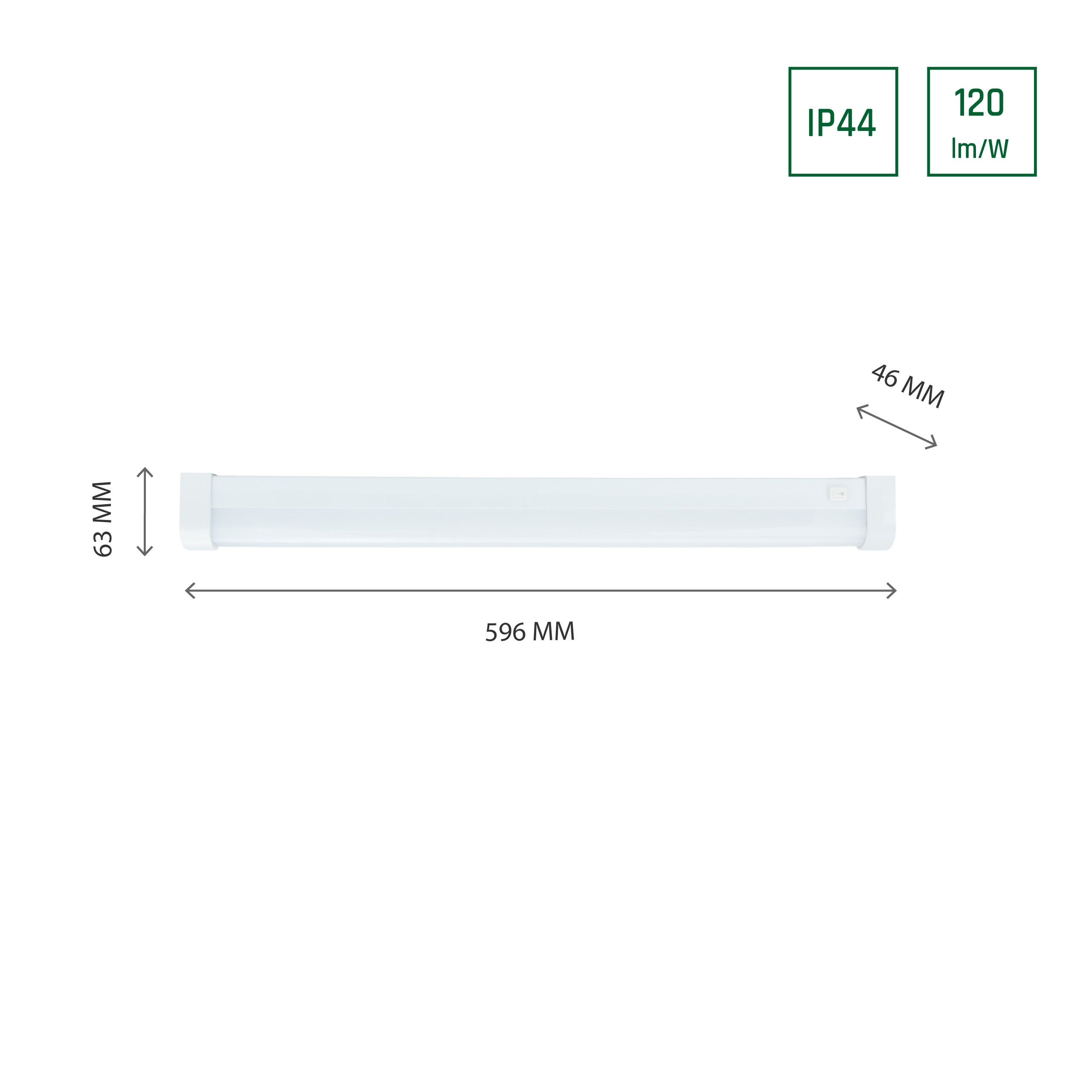Woj-SLI043016WW_PW AQUATICA 15W WW 230V 150st IP44 596x46x63 WHITE round ends, switch - Aquatica LED 15W