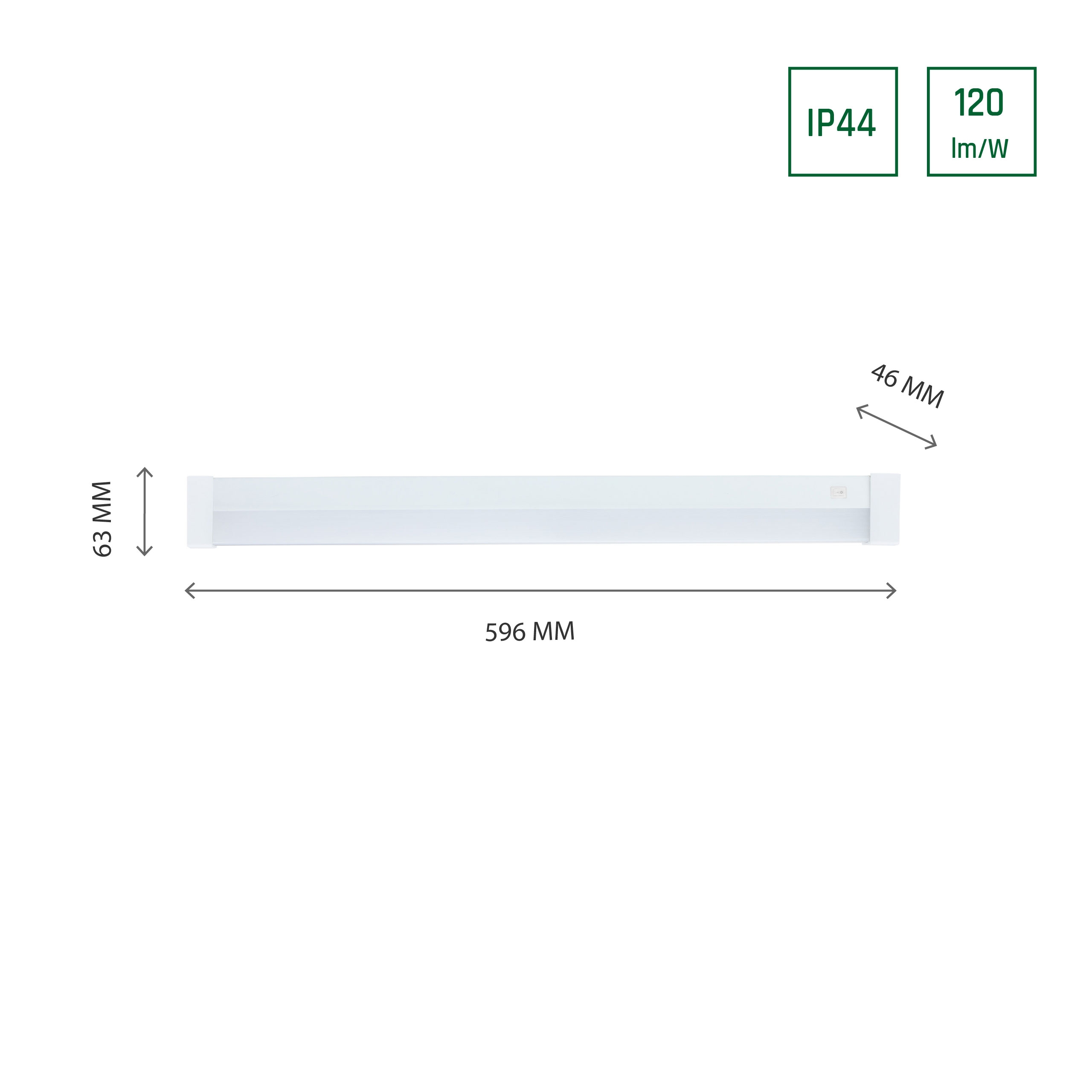 Woj-SLI043017NW_PW AQUATICA 15W NW 230V 150st IP44 596x46x63 WHITE square ends, switch - Aquatica LED 15W