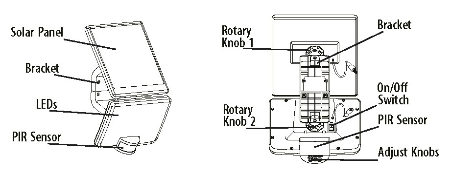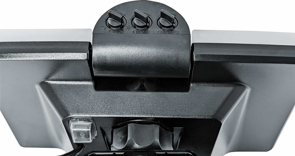 Obsahuje infračervené čidlo pohybu (PIR) s plynulou reguláciou: – čas osvetlenia (TIME) v rozsahu 10 – 60 sekúnd – rozsah detekcie pohybu (SENS) v rozsahu 1 – 10 metrov – nastavenie noc/deň (LUX) od 15 do 1000 luxov Čidlo má možnosť náklonu v rozsahu 0 ° - 150 °.