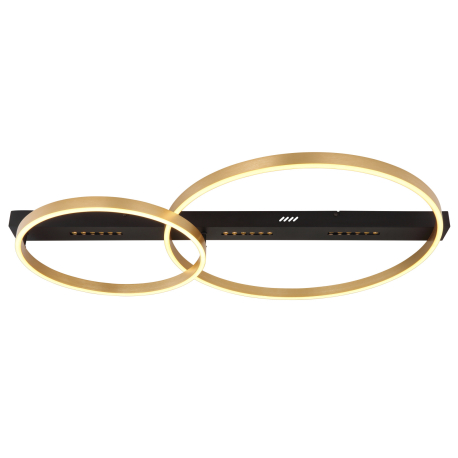 GL-48461-54R Stropní svítidlo kov černý matný, kov zlaté barvy, plast bílý, přepínání funkcí nástěnným vypínačem, paměťová funkce, Dx?xV:930x585x102mm, 1 kruh Ø:39,5cm, 2 kruh Ø:58,5cm, včetně LED 54W 230, 5706lm zdroj, 2560lm výstup, 3000K - Luffy LED