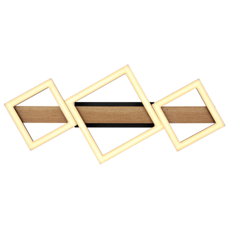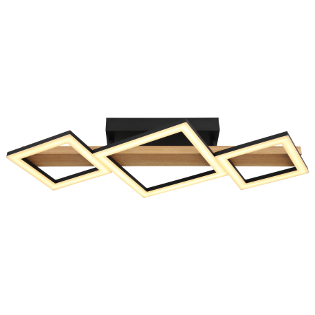 GL-67288D1 Stropní svítidlo kov černý mat, MDF imitace dřeva, ABS černý mat, plast bílý, Dx?xV:660x300x100mm, malé čtverce 16x16 cm, velké čtverce 22x22 cm, LED 29W 230V, 2900lm zdroj, 1560lm výstup, 3000K - Dustin LED
