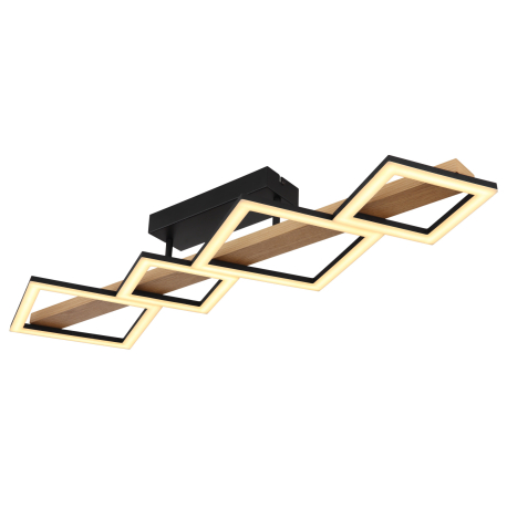 GL-67288D2 Stropní svítidlo kov černý mat, MDF imitace dřeva, ABS černý mat, plast bílý, Dx?xV:920x300x130mm, malé čtverce 16x16 cm, velké čtverce 22x22 cm, LED 35W 230V, 3700lm zdroj, 1880lm výstup, 3000K - Dustin LED